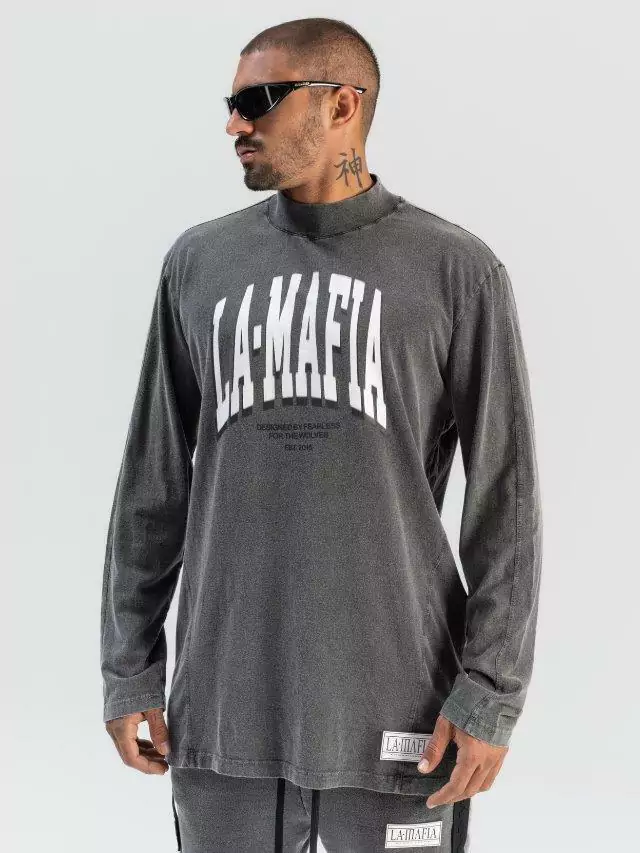 O Modelo na foto tem 1,79 Altura e 76Kg e esta vestindo a blusa da la mafia clothing no tamanho M