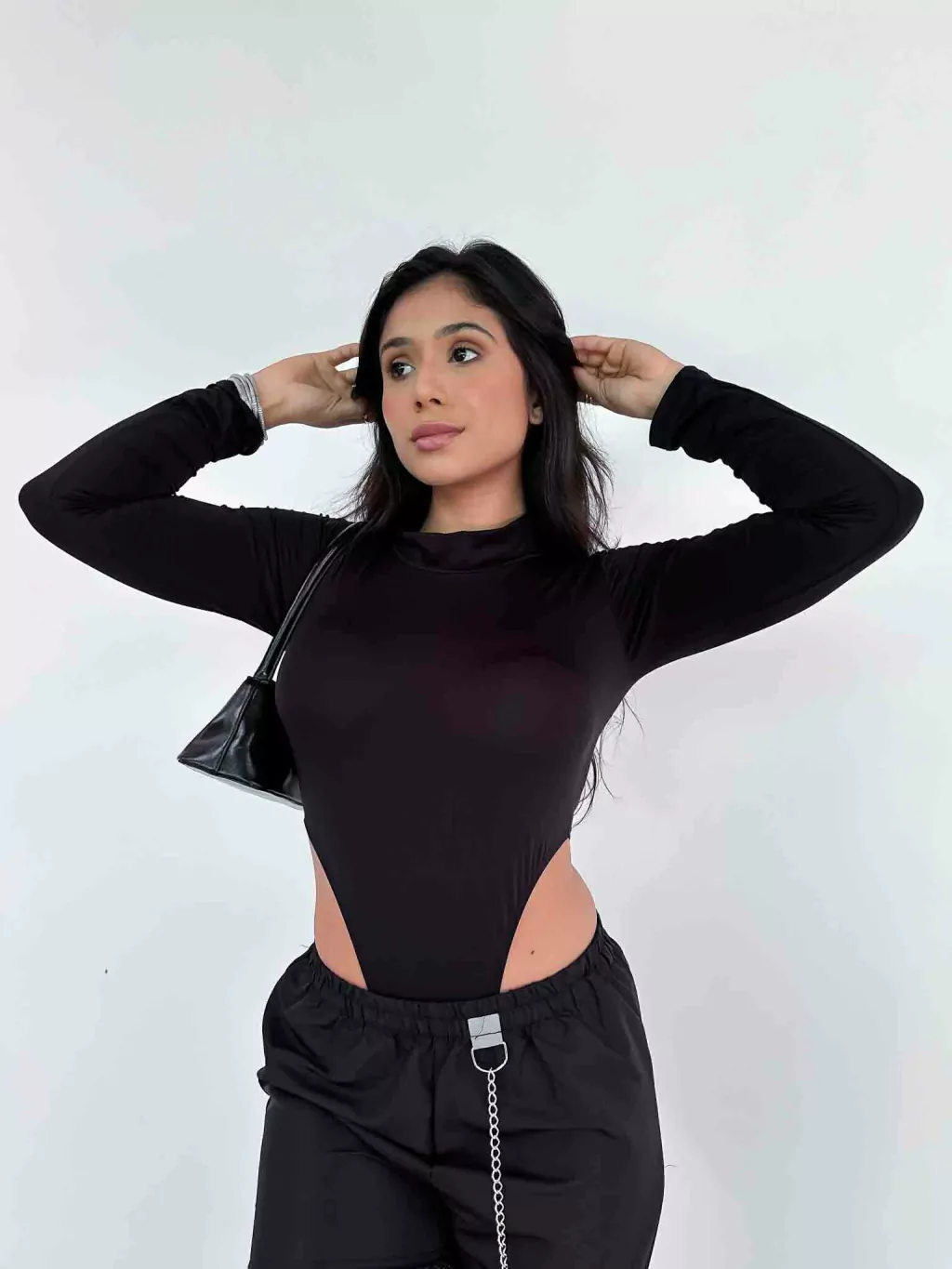 Eleve seu estilo com o nosso Body Cavado Manga Longa com Gola Alta e Bojo, uma peça que combina elegância, conforto e um toque moderno.