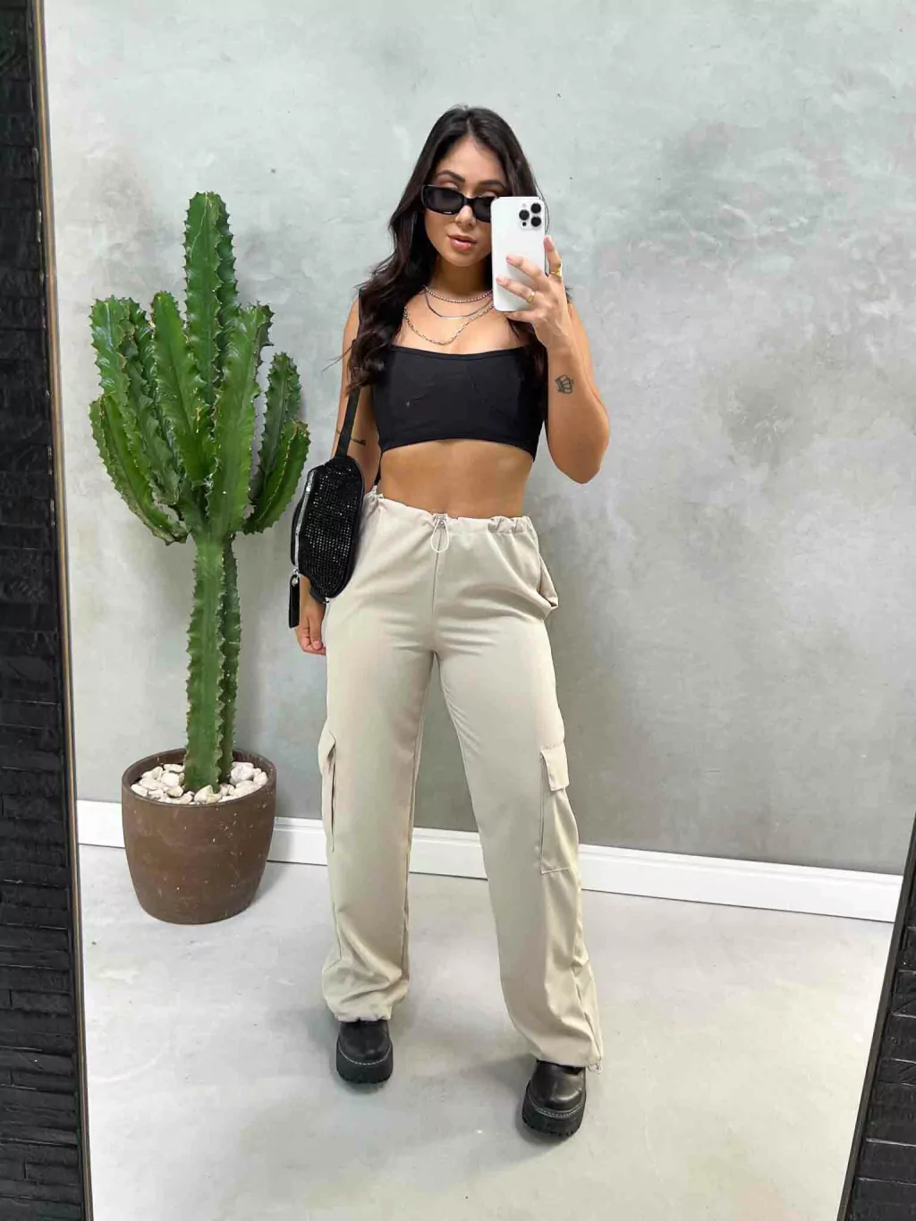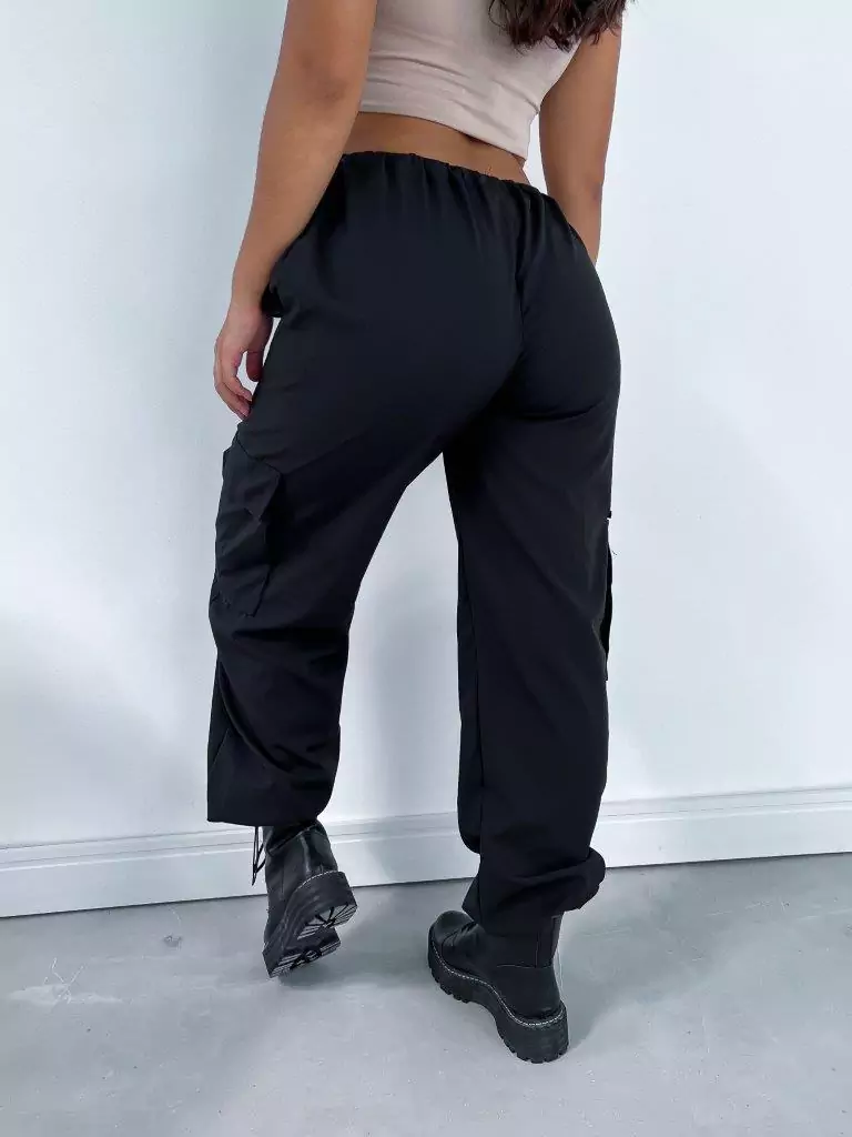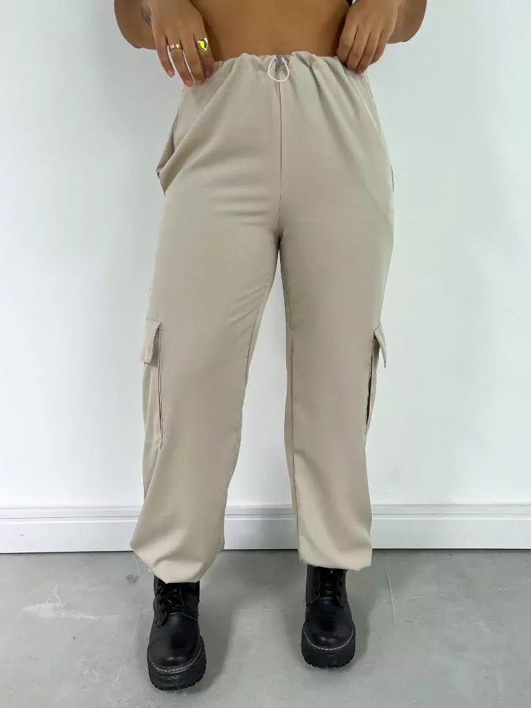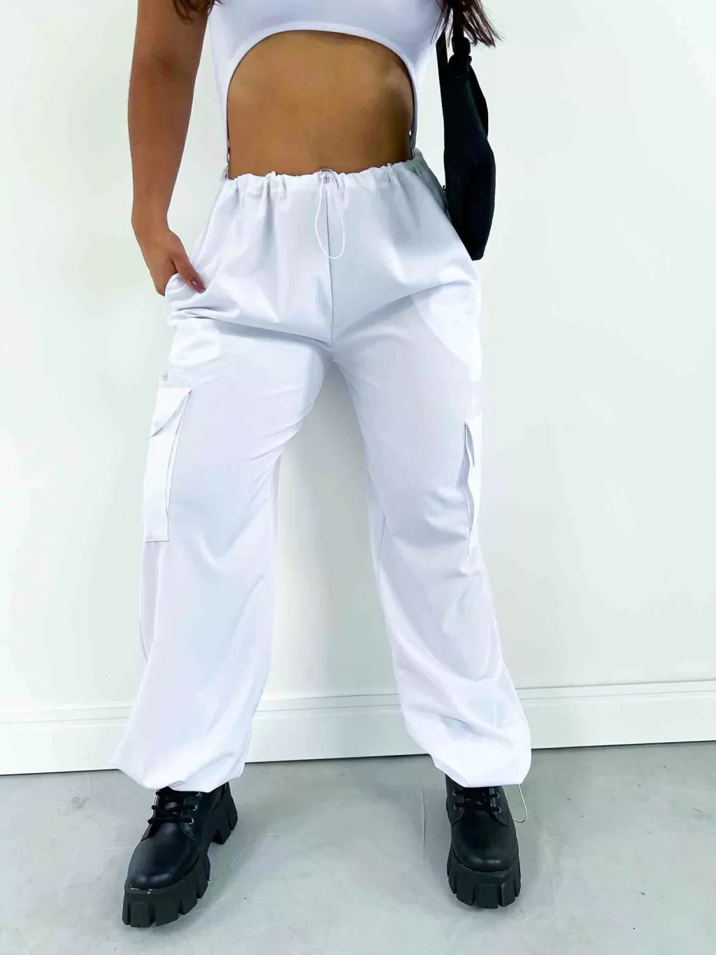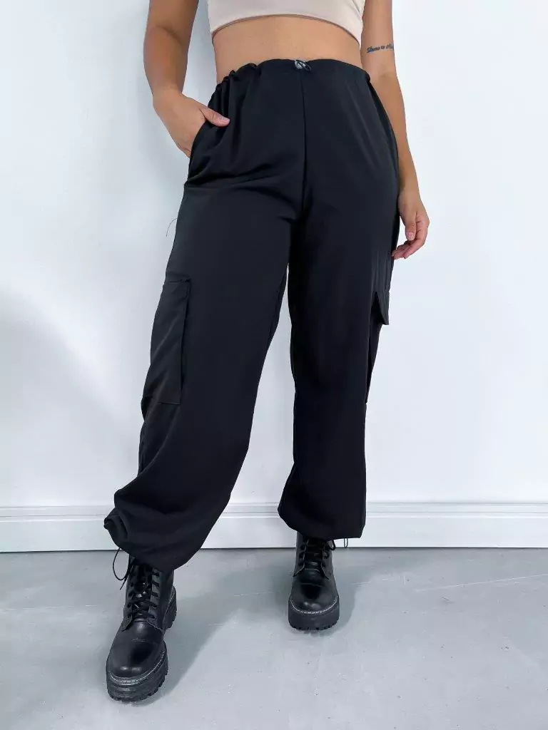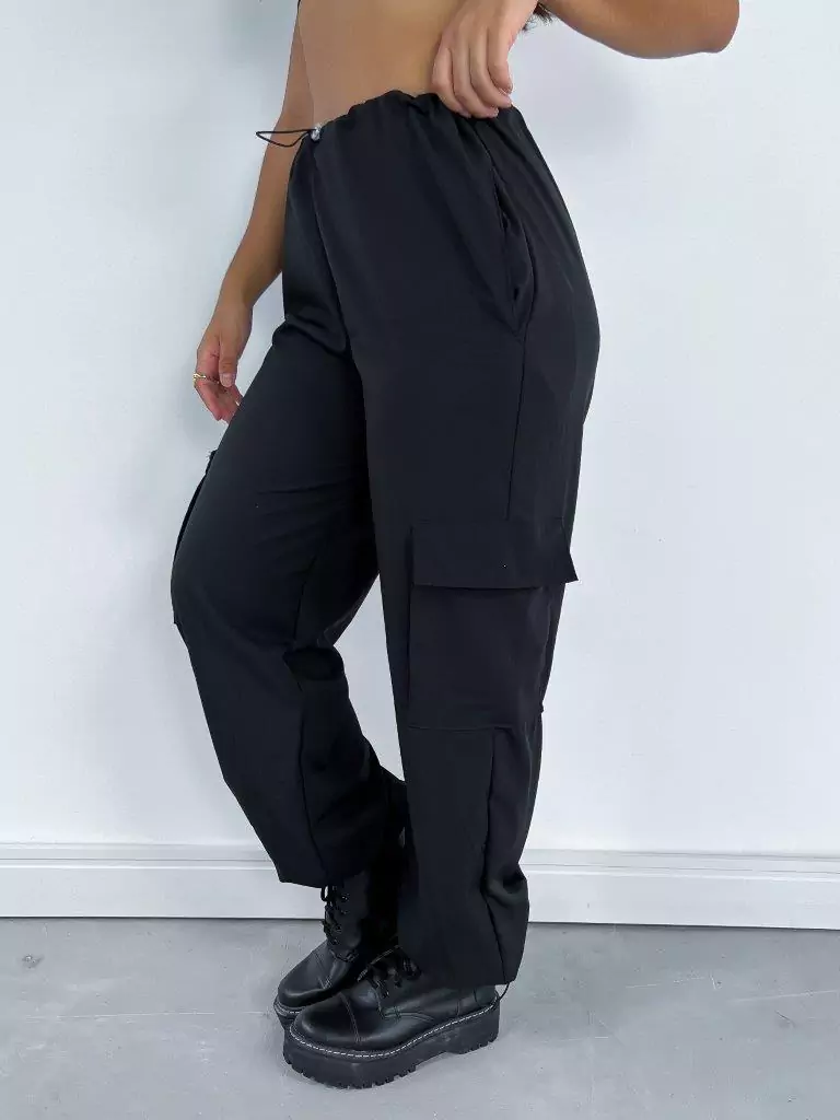 Calça tactel parachute com bolos laterais e ajuste na cintura e barra.