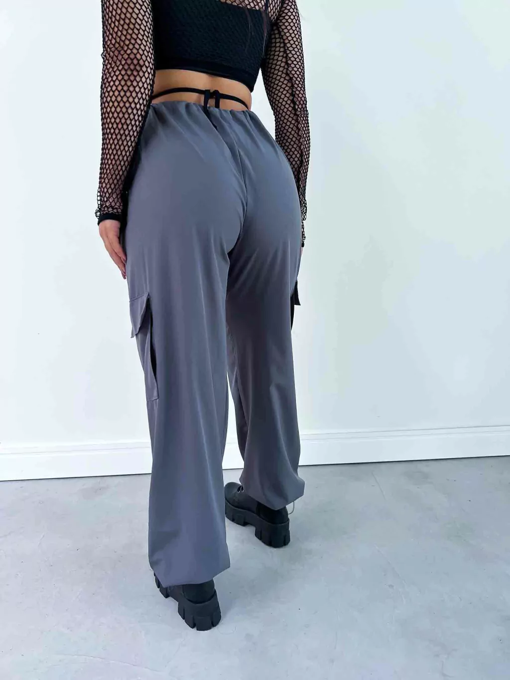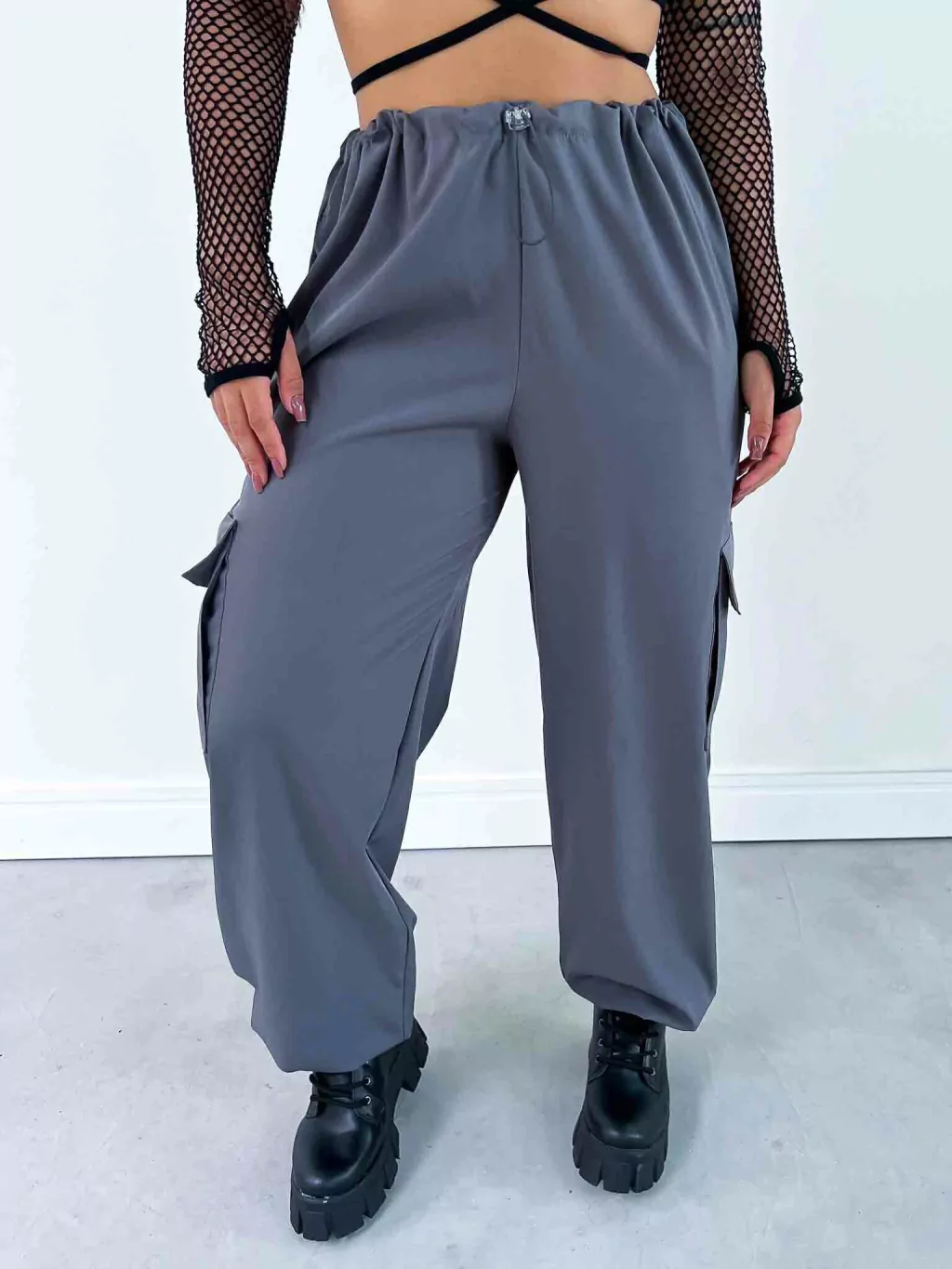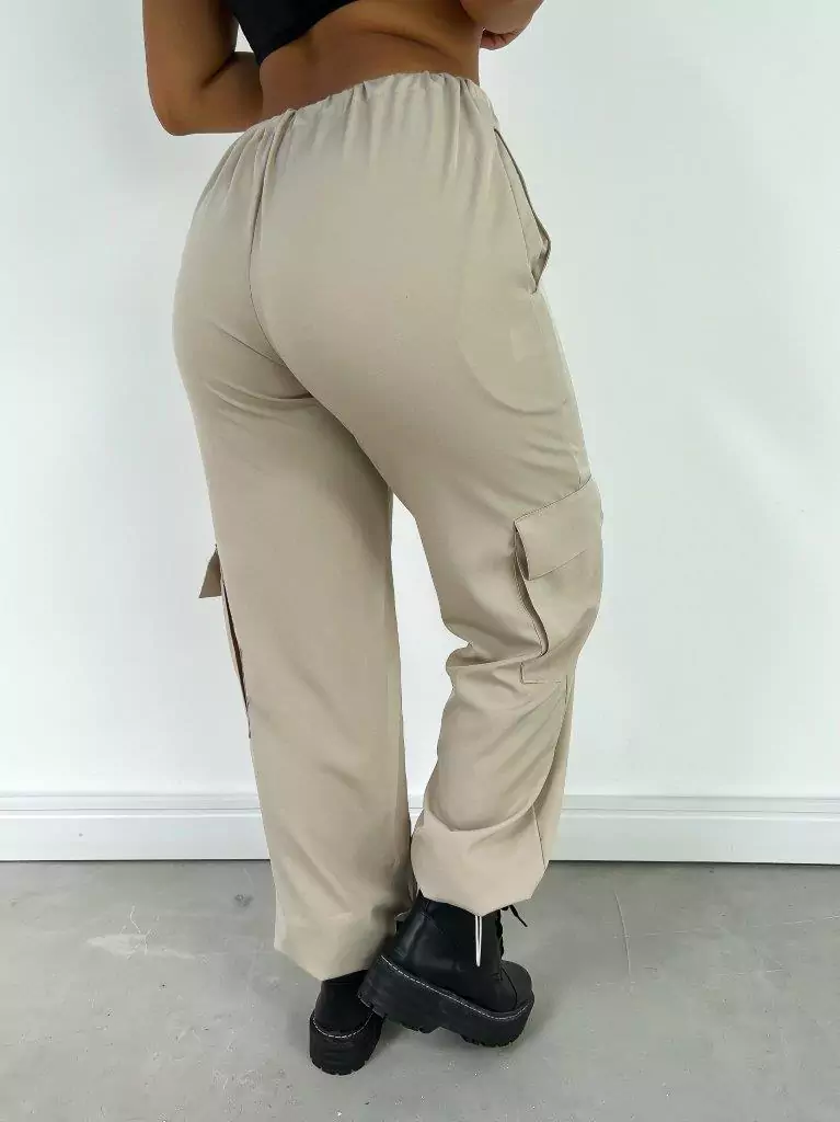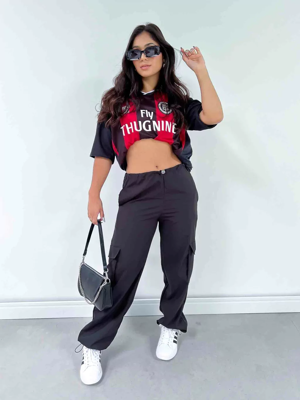Calça tactel parachute com bolos laterais e ajuste na cintura e barra.