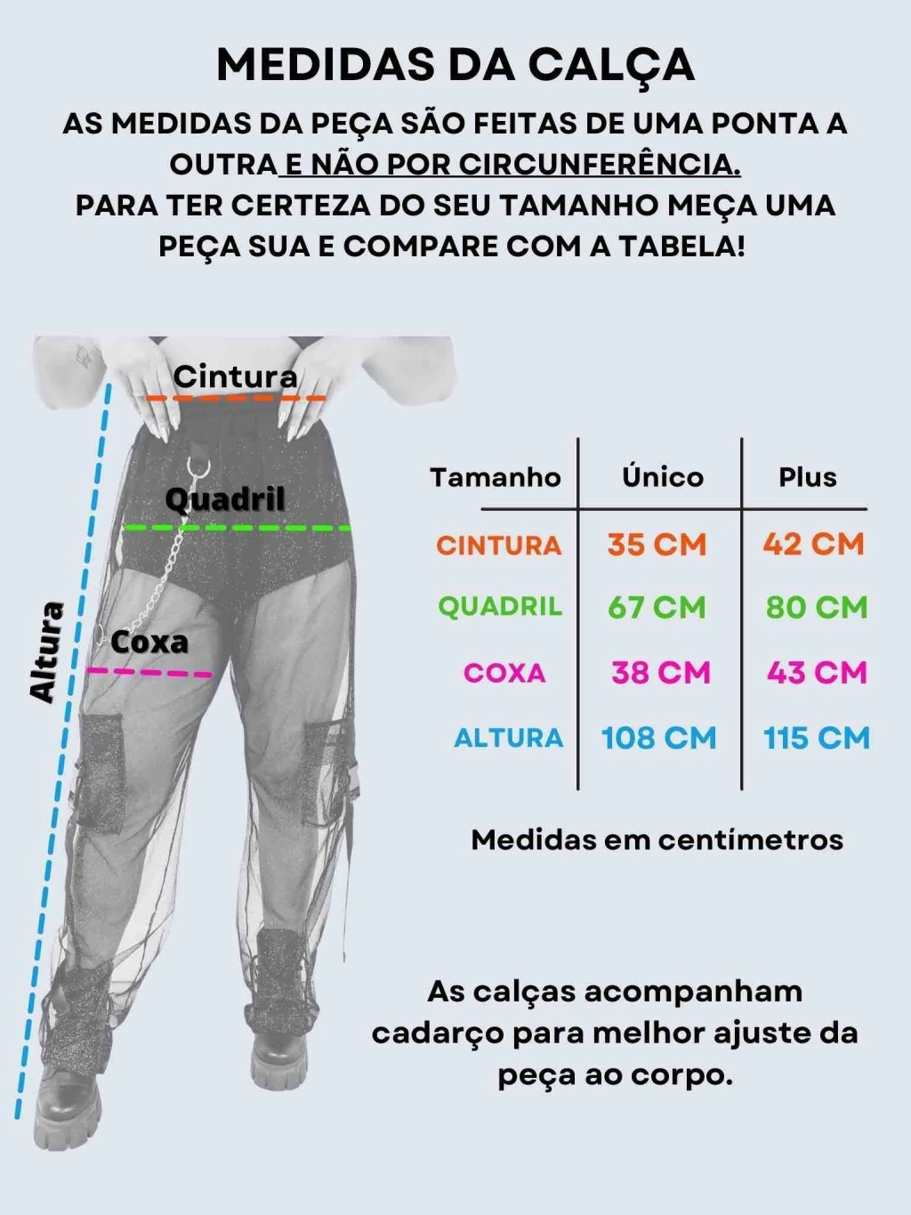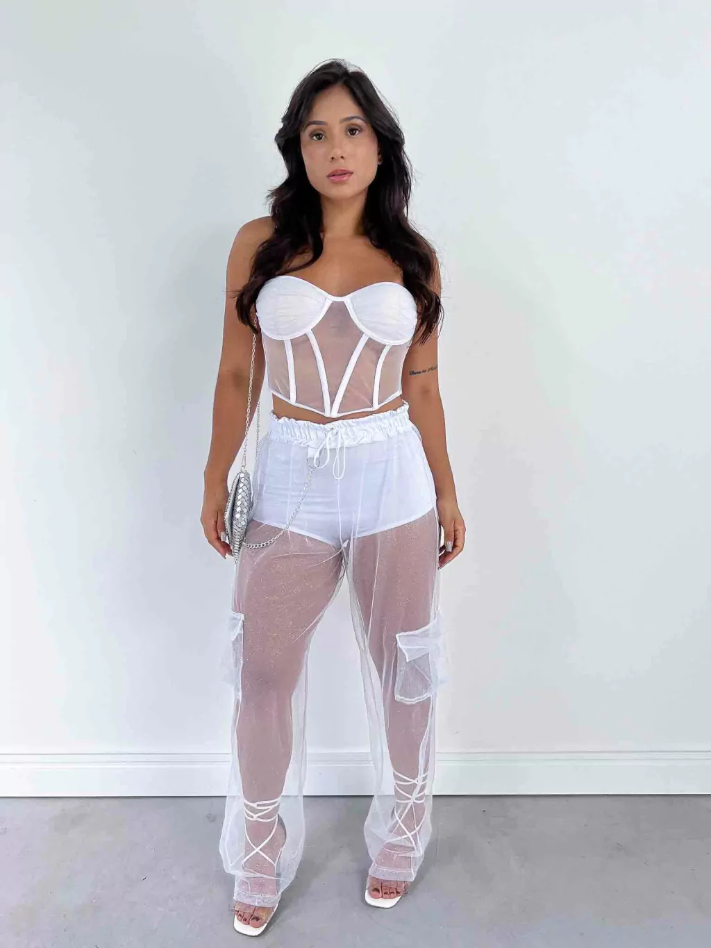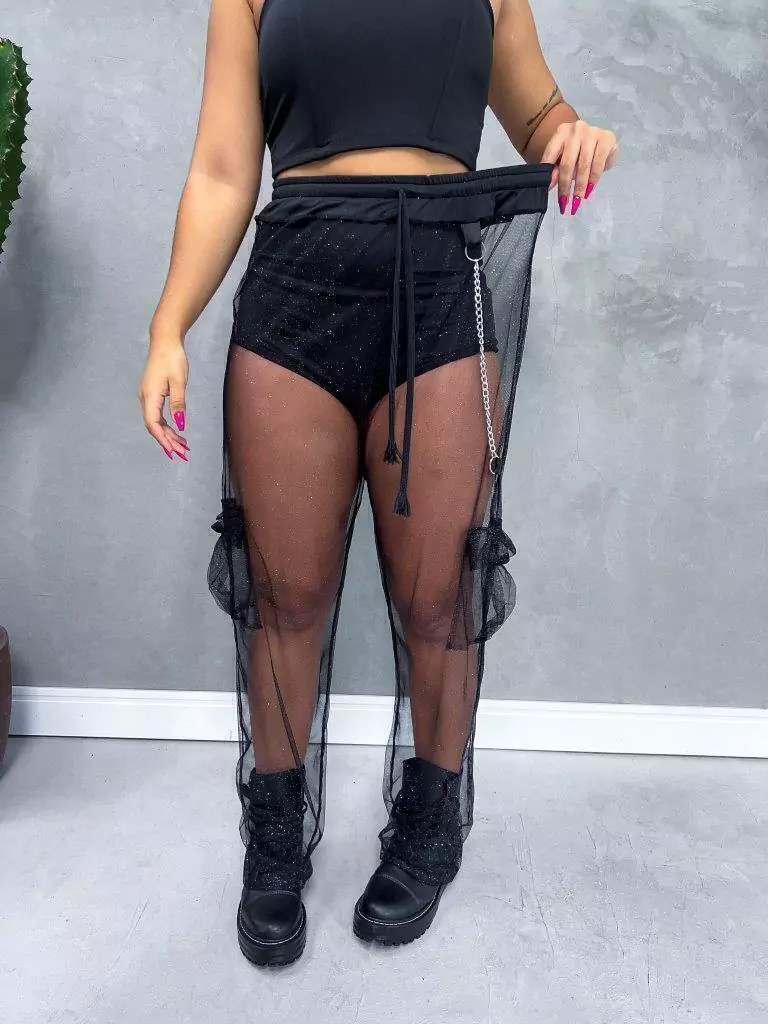 Calça Wide leg cargo transparente, acompanha hot Pant do forro !
