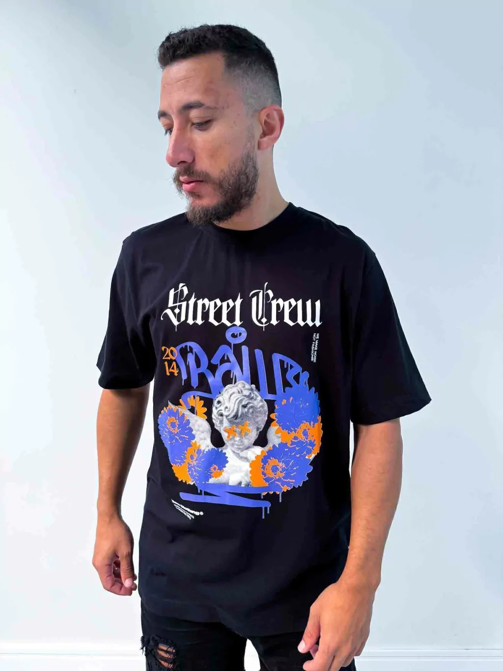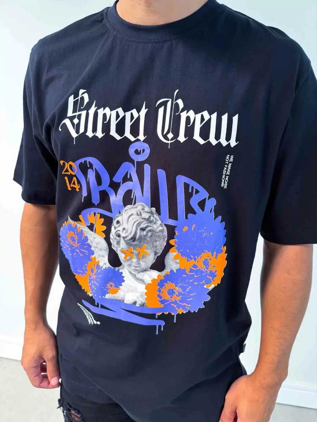 • O Modelo na foto tem 1,79 Altura e 76Kg e esta vestindo a camiseta da Baw no tamanho M