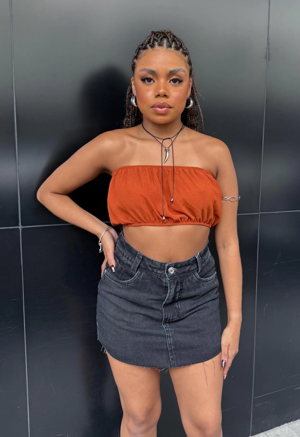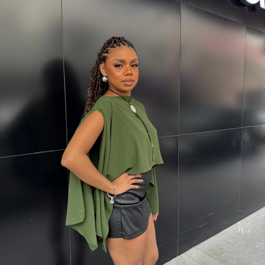 Feita em tecido leve e fluido, ela pode ser usada de diferentes formas: como cropped com amarração, capa aberta ou sobreposição estilosa. Fácil combinação com looks urbanos ou mais fashionistas.