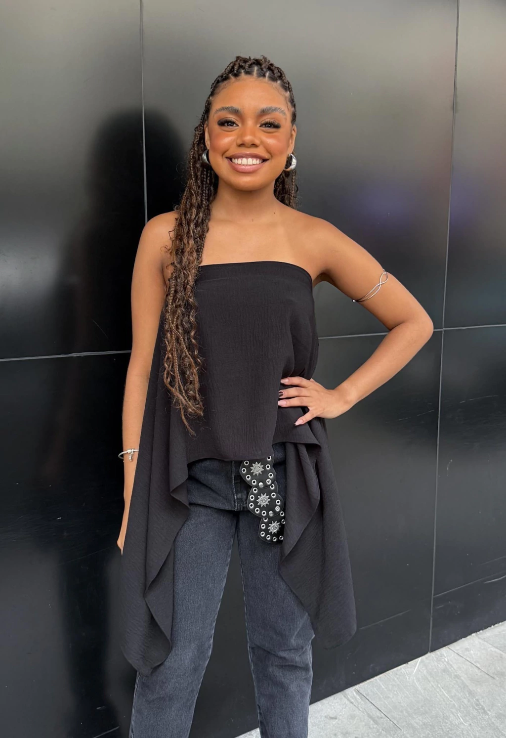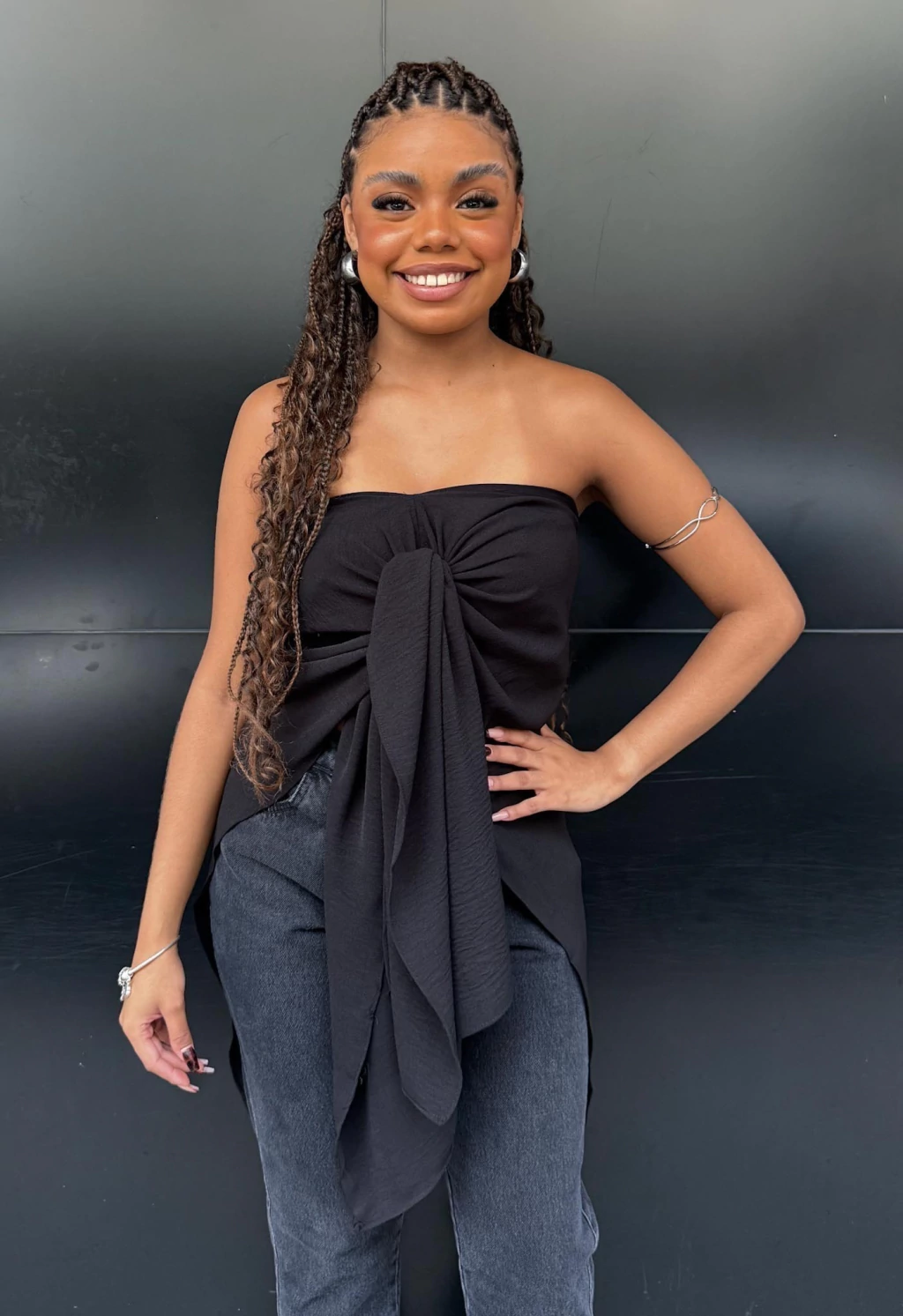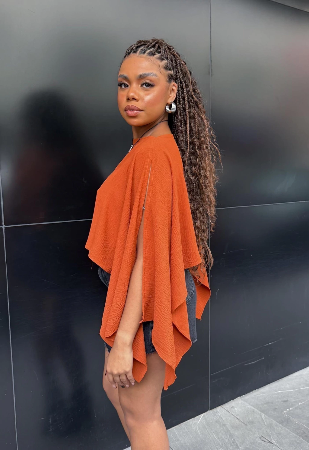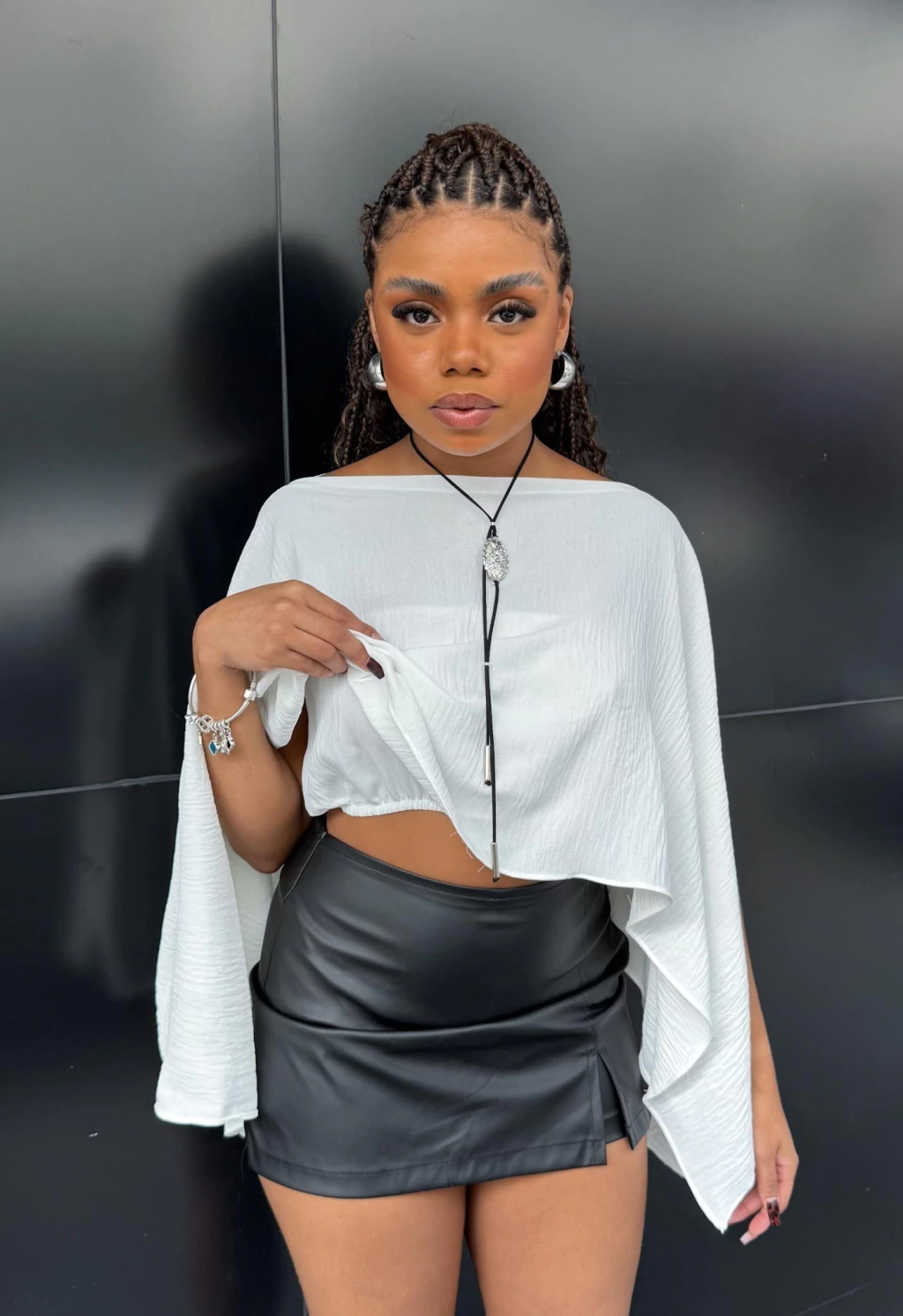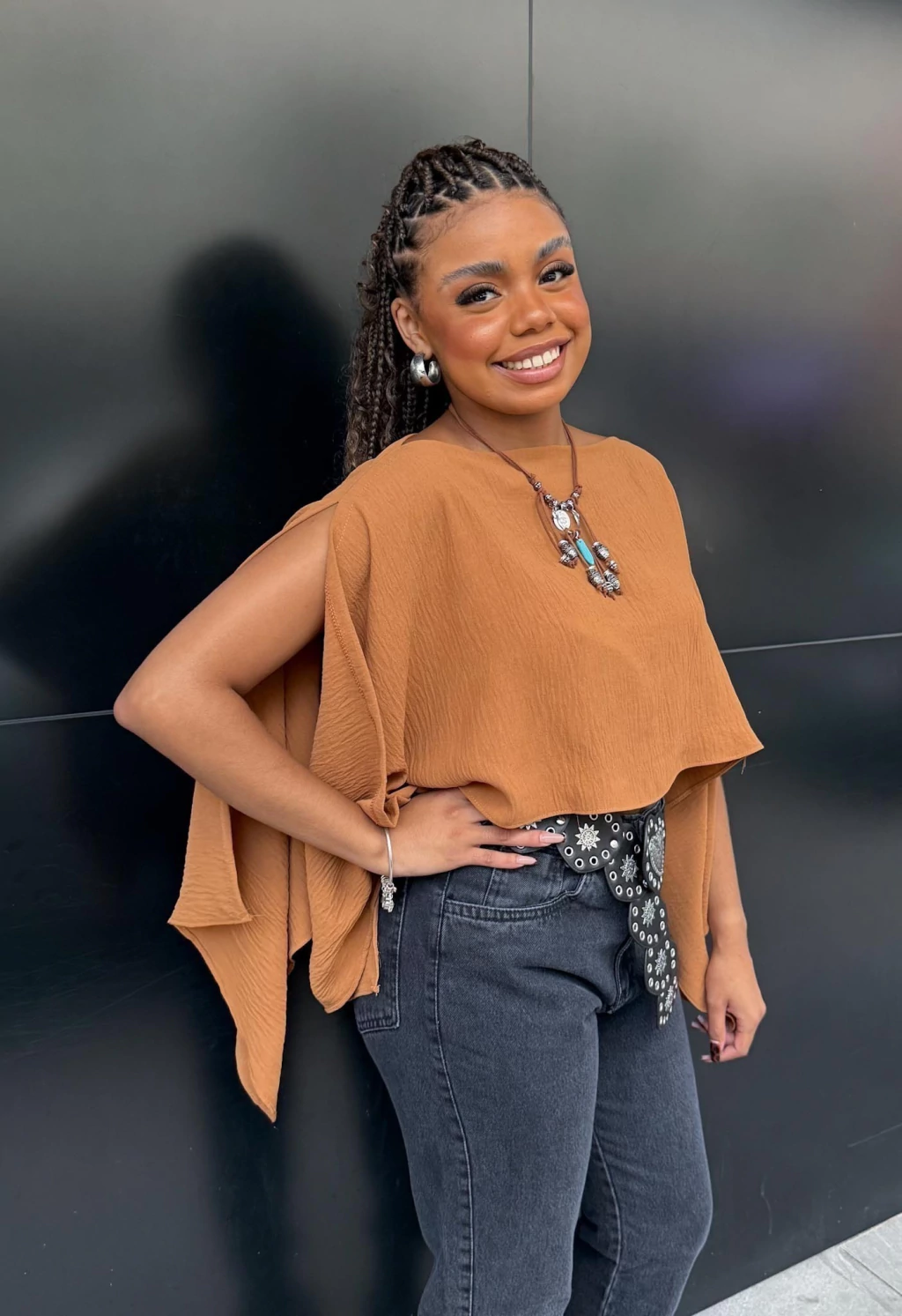 Uma peça, várias possibilidades! Essa blusa bata com modelagem capa é perfeita para quem ama versatilidade com estilo.