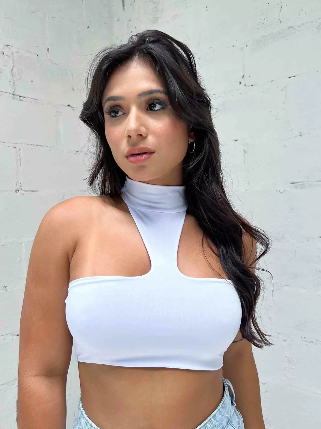 O Top Preto Assimétrico com Gola Alta e Recorte é aquele item que transforma qualquer look. Moderno, fashionista e cheio de personalidade, ele possui modelagem justa ao corpo, gola alta e recorte estratégico na parte frontal, que cria um visual autêntico, ousado e super estiloso.