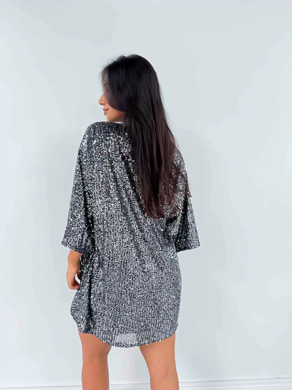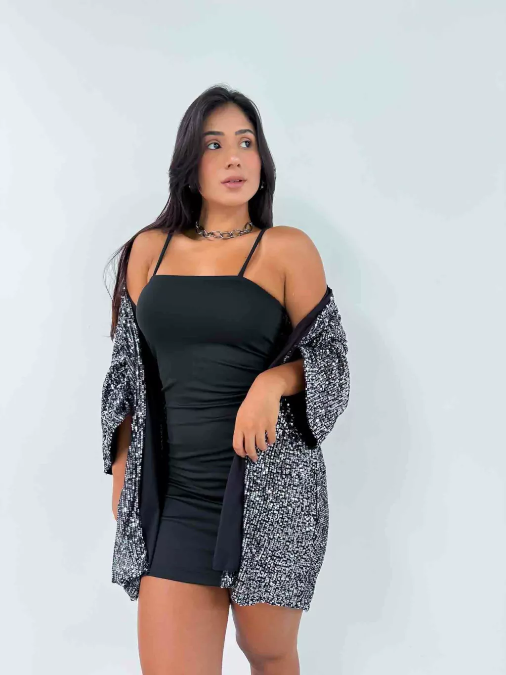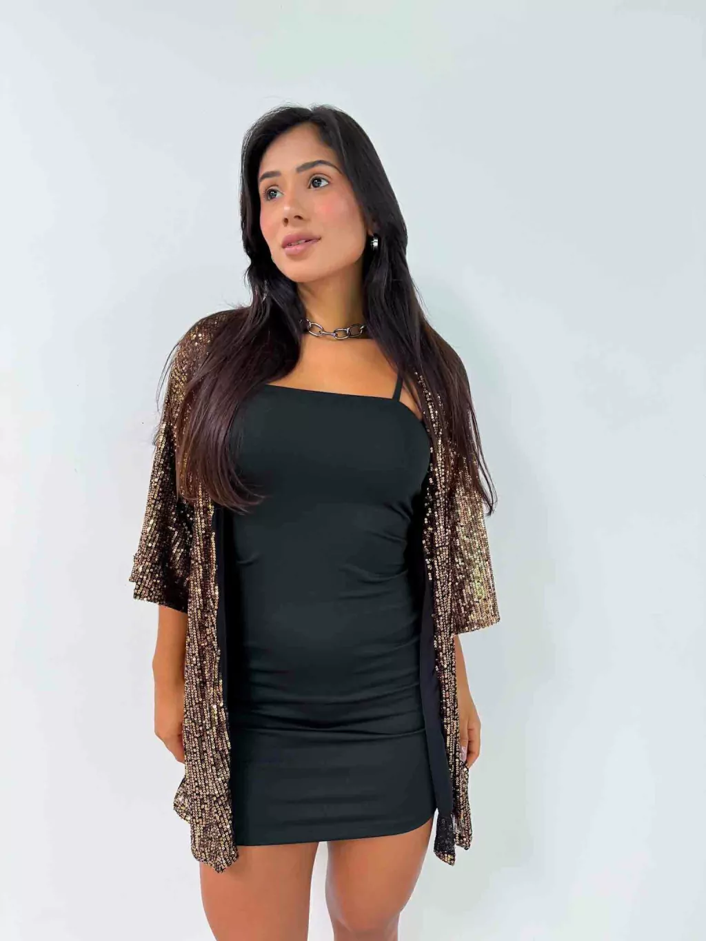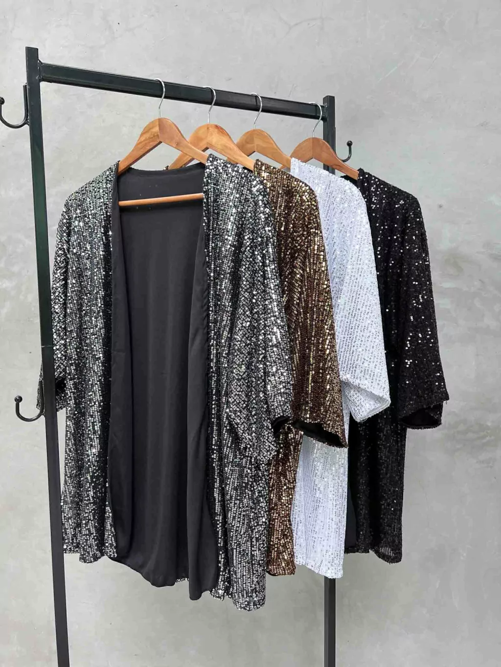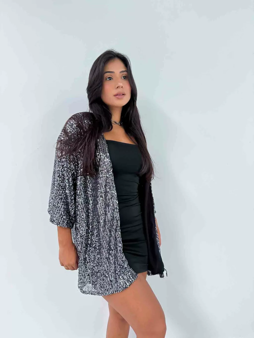 Adicione o Kimono de Paetê Forrado Manga Curta ao seu guarda-roupa e transforme seu estilo com elegância! ✨