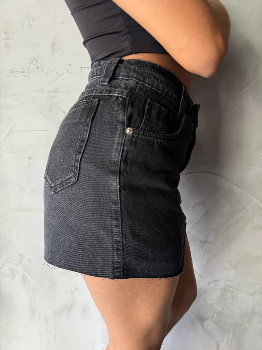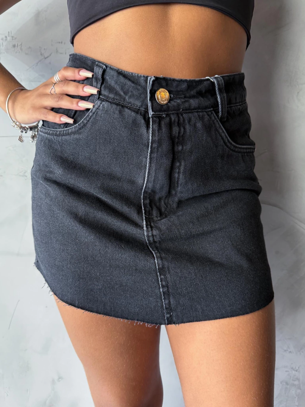 O short saia jeans é aquele coringa que não pode faltar no seu guarda-roupa! Com o visual moderno da saia e a praticidade do short, ele garante conforto e estilo para qualquer ocasião.