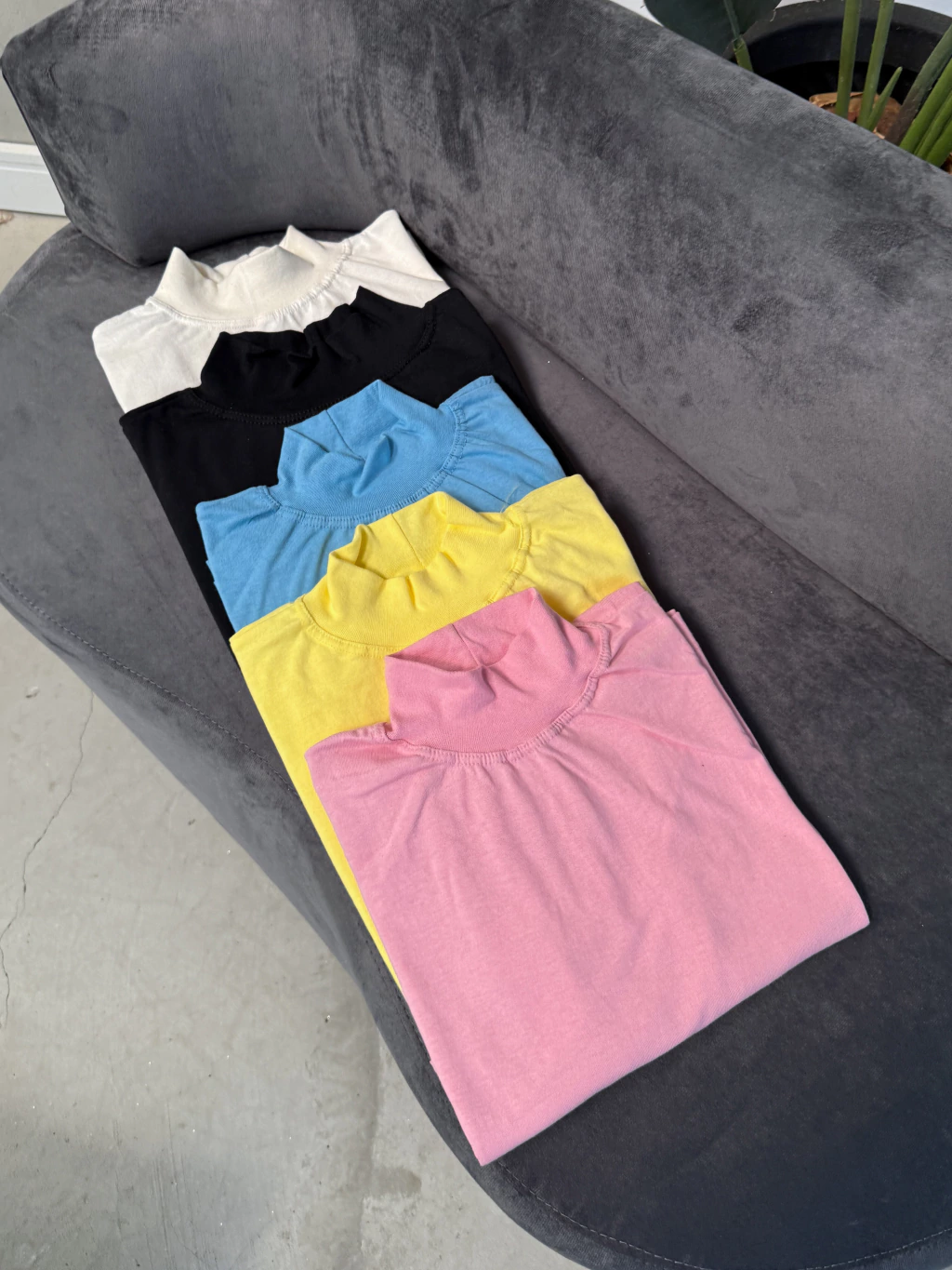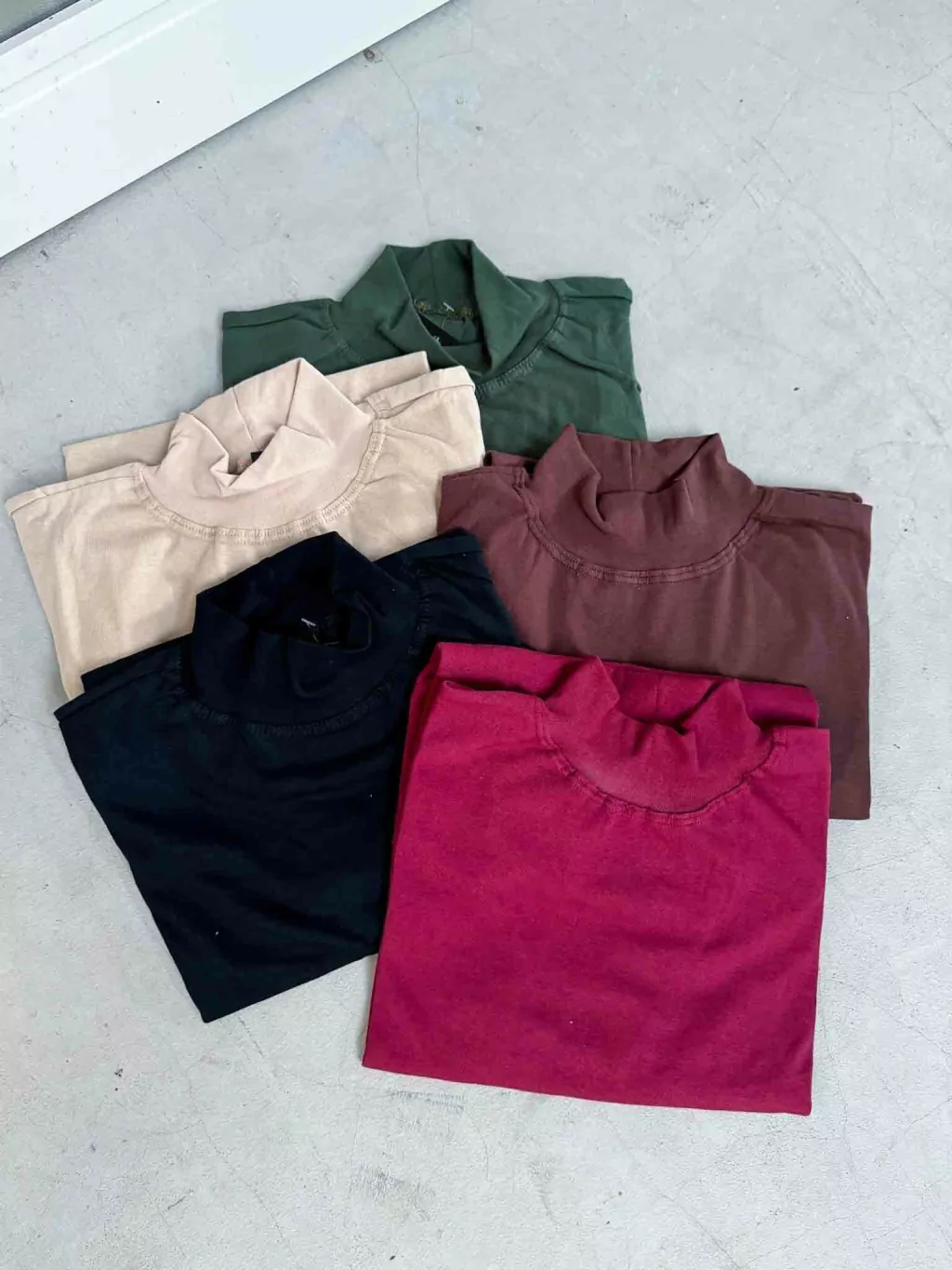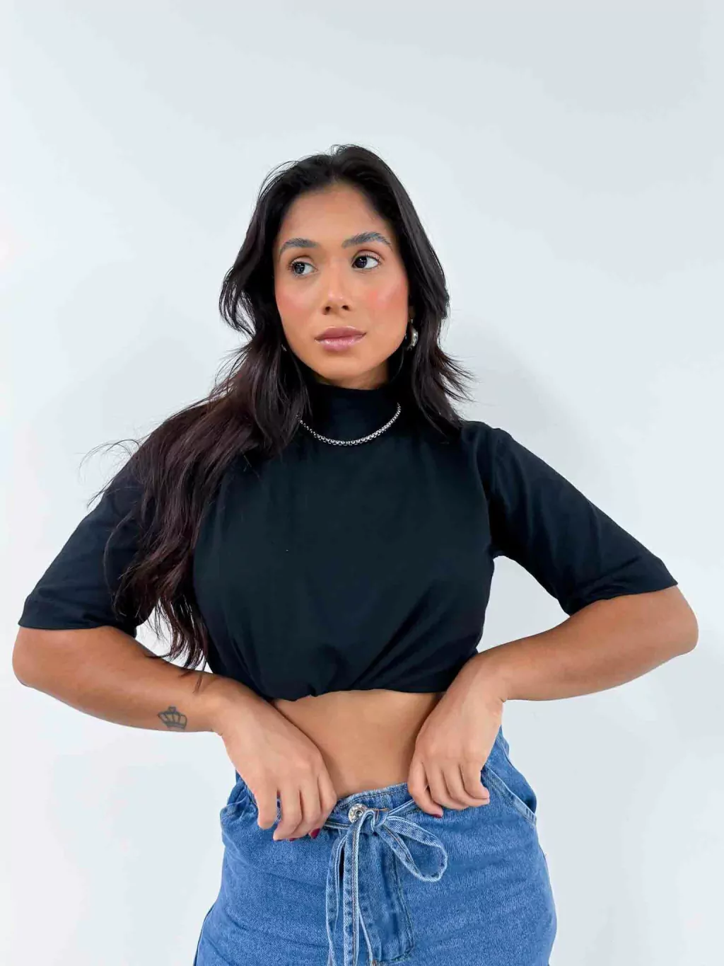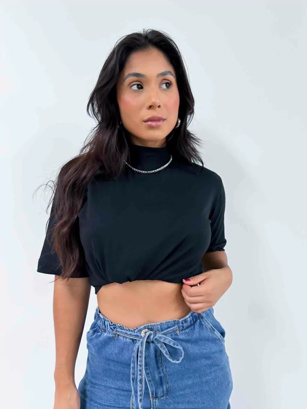 T-shirt Básica Gola alta, produzida em algodão e gola em ribama.