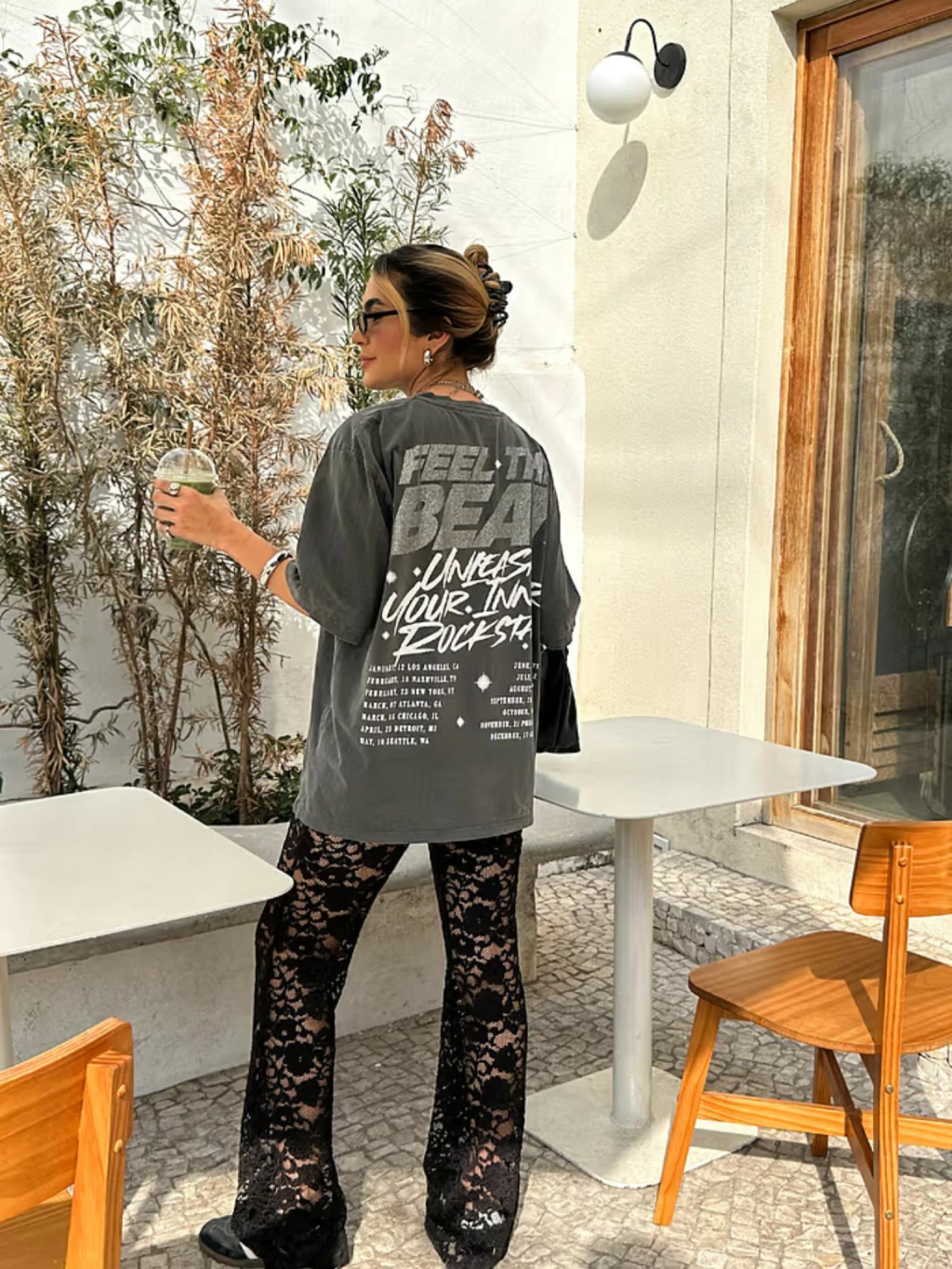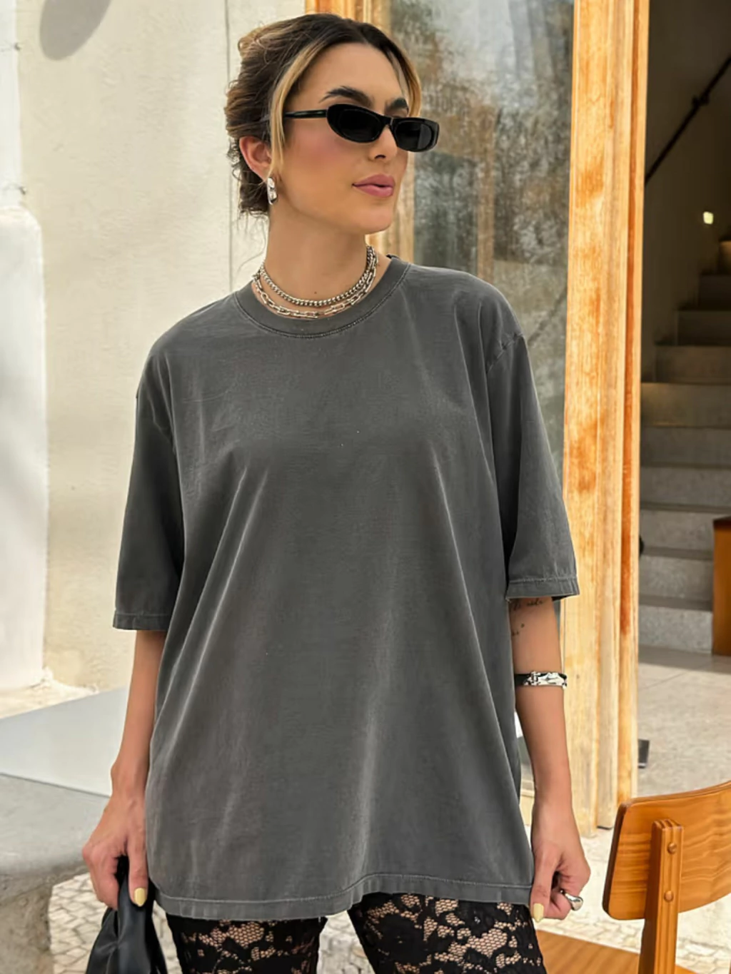 T-shirt oversized é sempre uma peça diferenciada para compor looks leves, confortáveis e despojados.