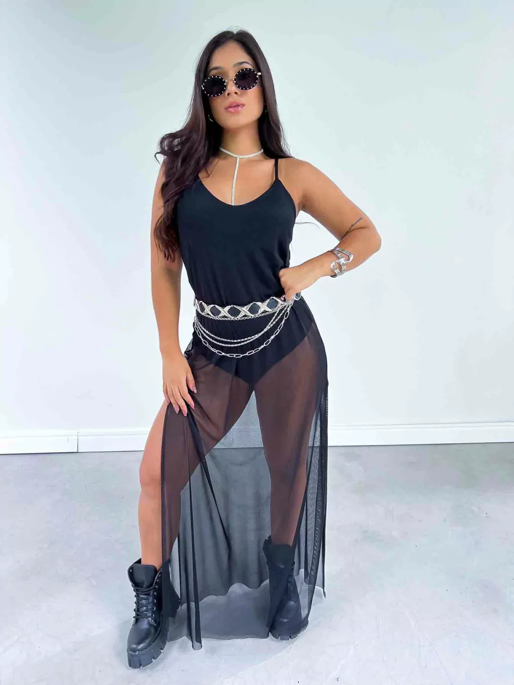 Ele possui um caimento impecável do tule, dando leveza e muito estilo, aquela peça com muita transparência.
