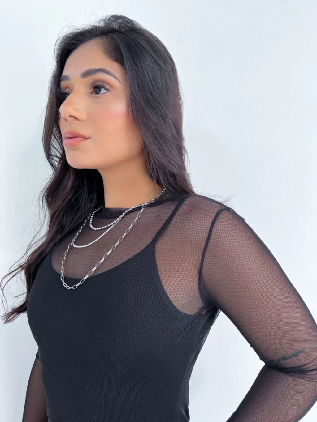 Vestido Tule Preto Manga Longa